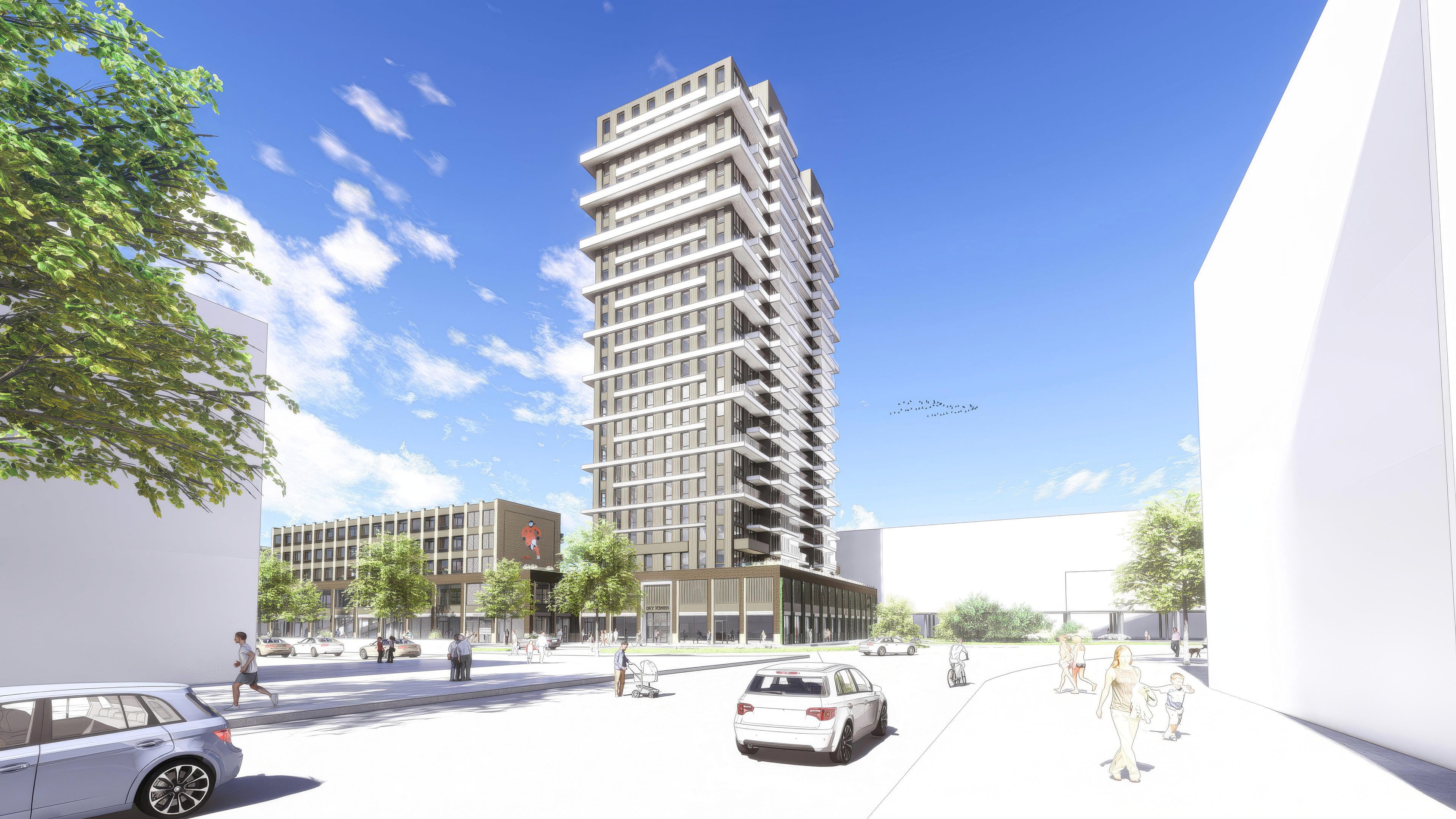 In deze toren komen 231 huurappartementen en levendige winkelvoorzieningen op de begane grond. Zowel auto als fiets parkeren is in het project geïntegreerd.